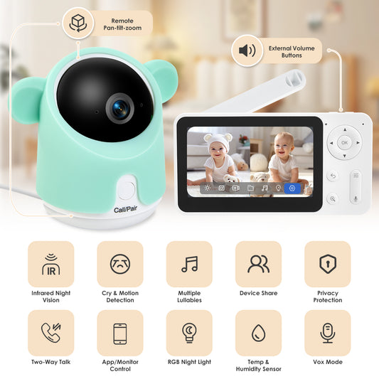 Baby Monitor with 2 Cameras Split Screen WiFi Smartphone App Control